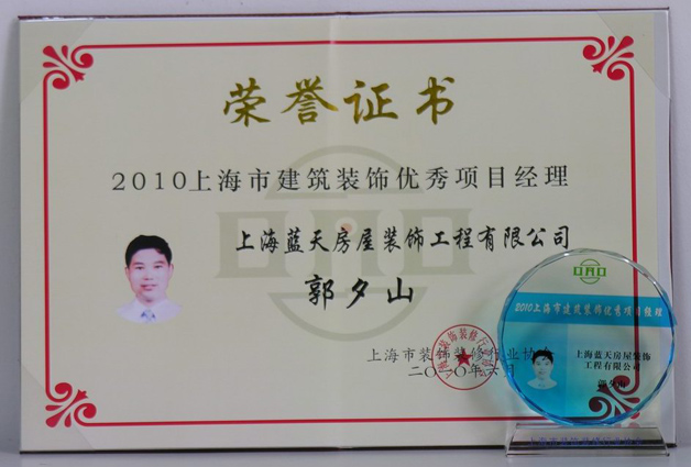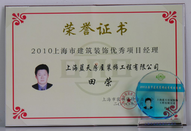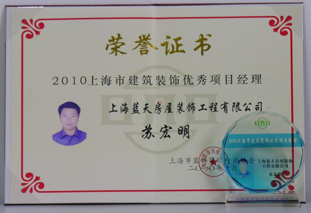 201006月,藍(lán)天公司田榮、郭夕山、蘇宏明三位項(xiàng)目經(jīng)理被評(píng)為上海市建筑裝飾優(yōu)秀項(xiàng)目經(jīng)理。