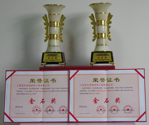 2010年09月,藍(lán)天公司京滬高鐵上海虹橋站新建石材工程;上海虹橋T2航站樓、東交通廣場(chǎng)、磁浮虹橋站石材裝飾工程紛紛榮獲第二屆中國(guó)長(zhǎng)三角優(yōu)秀石材建設(shè)工程專業(yè)工程類“金石獎(jiǎng)”。