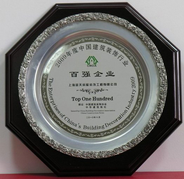 2010年10月,藍天公司捧回了第八個中國建筑裝飾行業(yè)百強企業(yè)獎牌。這是藍天公司在建筑裝飾行業(yè)品牌質量的又一認可。