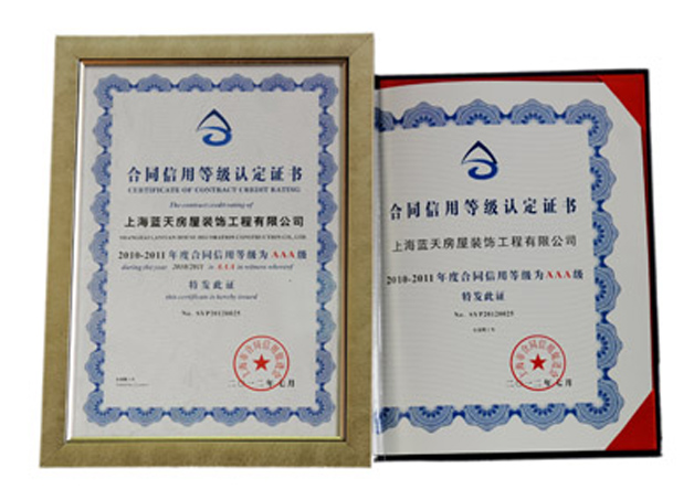 20137月,藍天公司2010-2011年度合同信用等級被評定為AAA級,同時被評為2010-2011年度上海市守合同重信用企業(yè)。