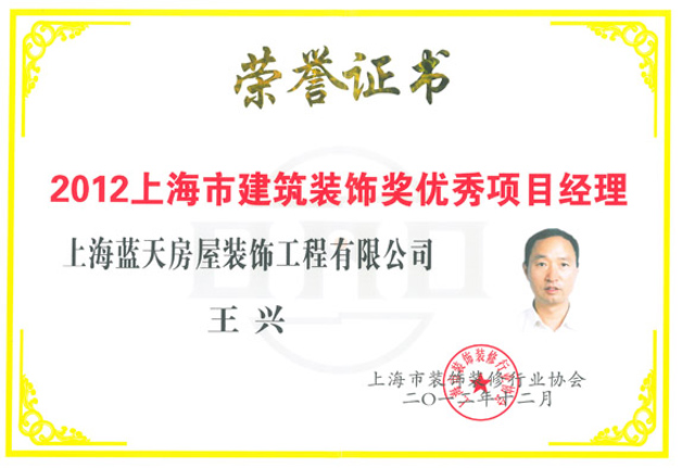 2012年10月,藍(lán)天公司榮獲上海市裝飾裝修行業(yè)協(xié)會頒發(fā)的三項大獎: