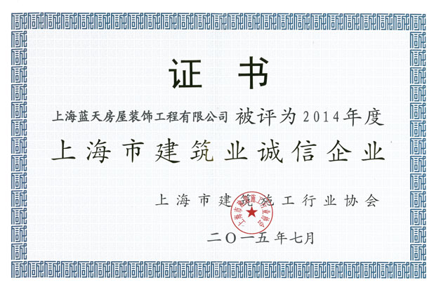 在本次大會上,我公司被評為“2014年度上海市建筑業(yè)誠信企業(yè)”。