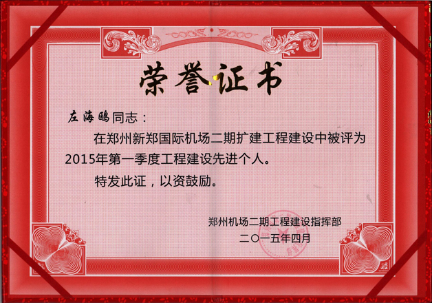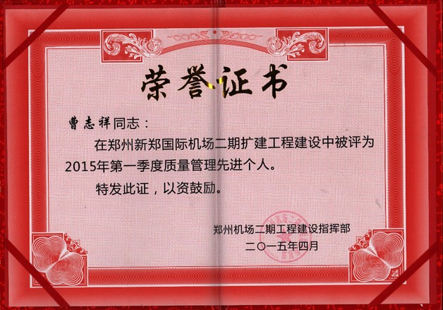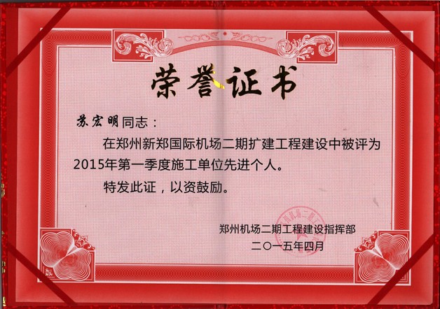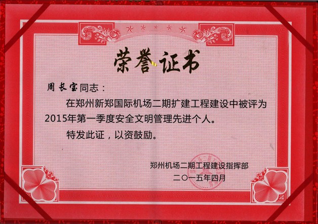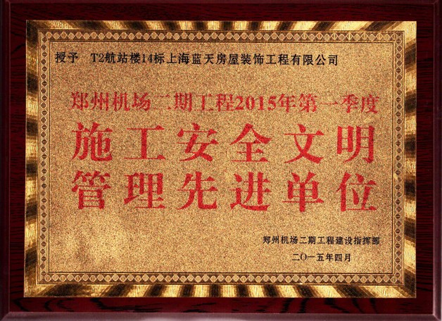 機(jī)場指揮部定期對各家建設(shè)單位、施工節(jié)點(diǎn)進(jìn)行工作考評,我司在鄭州機(jī)場T2航站樓鋼構(gòu)、安裝、消防、弱電、幕墻、精裝修等20多家參建單位中綜合排名第一;在鄭州機(jī)場二期航站區(qū)260多家參建單位中綜合排名第二;多位項(xiàng)目管理人員被評為“先進(jìn)個人”。
