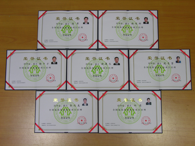 2009年6月7日,在蘇州召開了全國優(yōu)秀項目經(jīng)理表彰大會,藍天公司周萃、韓廷科、郭夕才、顧康生、周東賢、李紀美、田榮七位榮獲全國建筑裝飾優(yōu)秀項目經(jīng)理的一級注冊建造師參加了表彰大會。