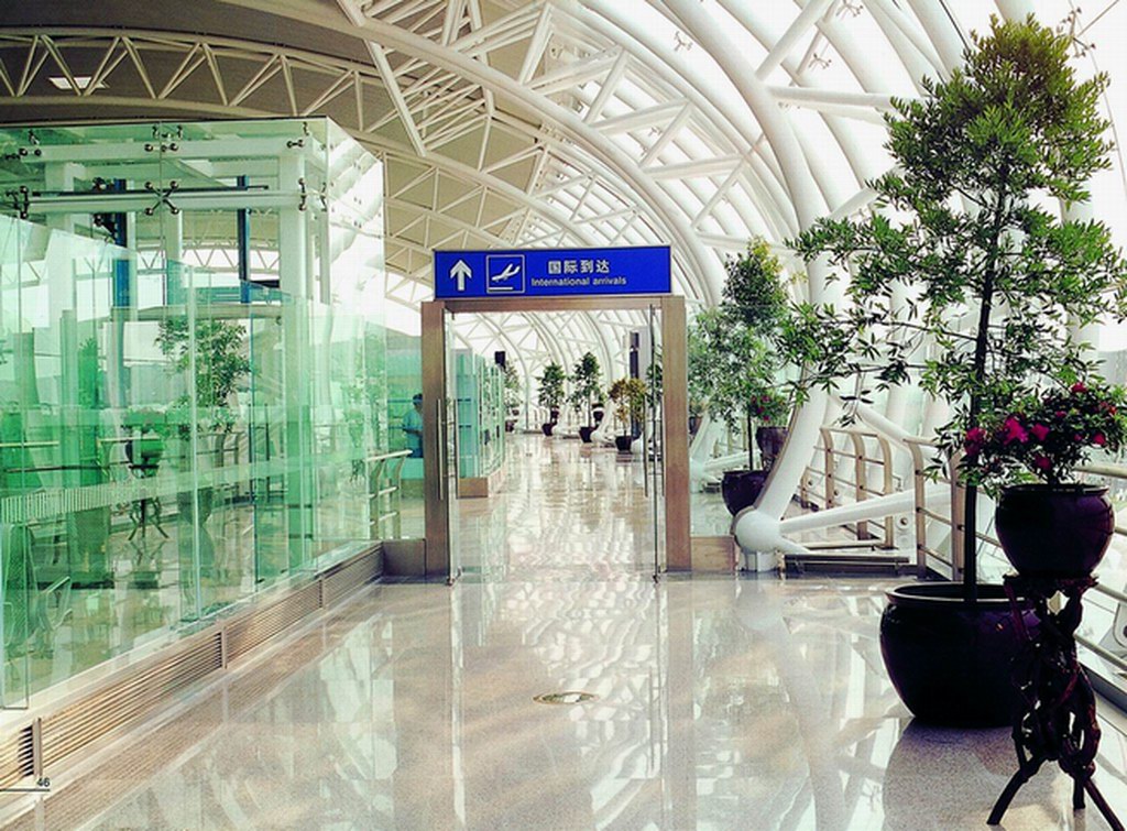 本工程施工的特點(diǎn)和難點(diǎn):一是大,整個(gè)出發(fā)層由我公司一家施工,其中19000多平方米石材鋪貼工程,當(dāng)時(shí)是我公司成立以來所做地面面積最大的項(xiàng)目;二是精,國內(nèi)國際貴賓廳是由我公司設(shè)計(jì)、選材、裝飾,業(yè)主對(duì)裝飾檔次、質(zhì)量要求非常高;三是整個(gè)侯機(jī)大廳、侯機(jī)長廊為弧狀扇形,石材鋪貼、接縫等工藝難度大;四是沿海地區(qū)空氣潮濕,對(duì)石材的防水、防污、防空鼓的技術(shù)處理要求高。