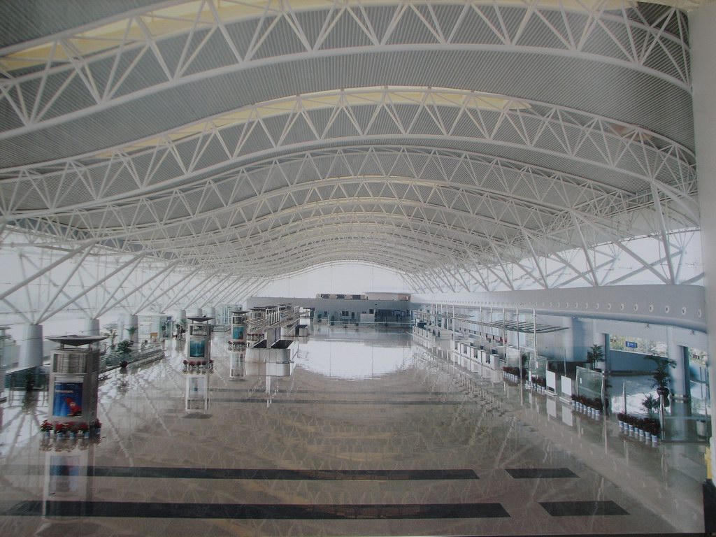 寧波櫟社機(jī)場(chǎng)二期建設(shè)航站樓工程是寧波市跨世紀(jì)標(biāo)志性建筑之一。工程建筑面積為43500平方米,分上下兩層,底層為鋼筋混凝土框架結(jié)構(gòu),二層為大跨度鋼桁架無柱空間,主體屋面呈單曲或雙曲面形。